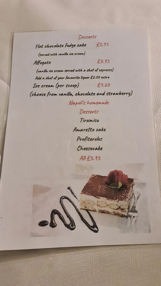In terms of pricing, Napoli strikes a fair balance-most mains fall within the £10-£18 range, offering excellent value considering portion size and ingredient quality. Compared to other Italian eateries in the region, Napoli consistently delivers a more refined, flavorful experience.