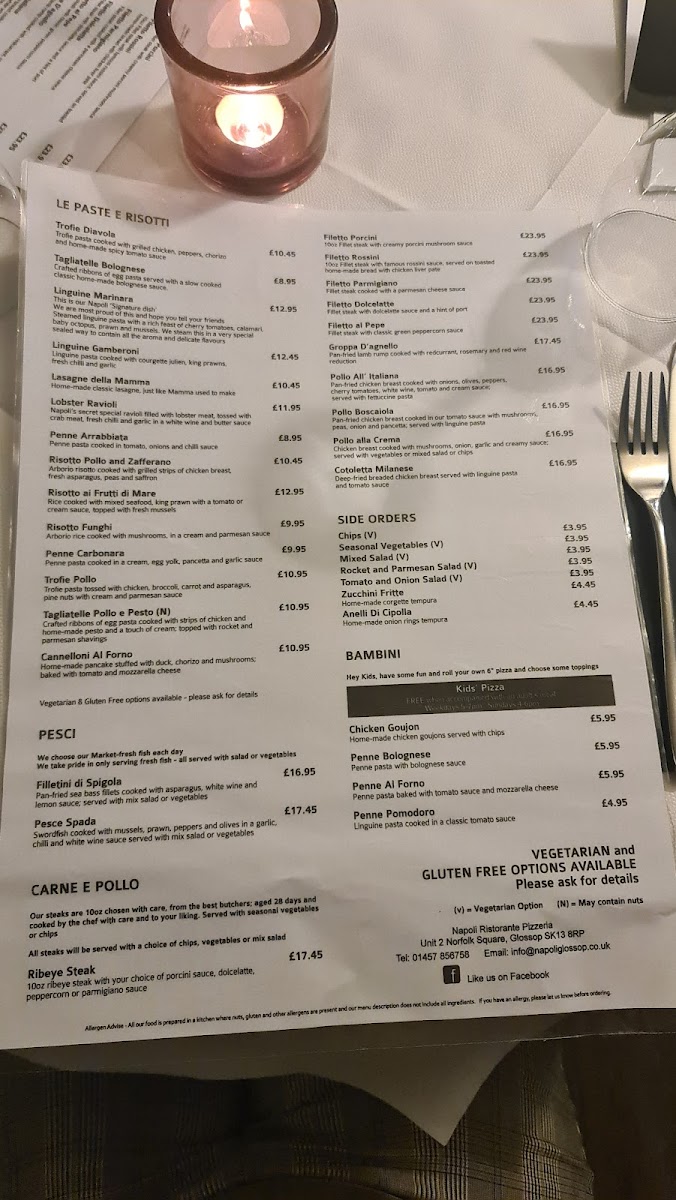 Overall, the Napoli Restaurant Menu is ideal for those seeking a genuine Italian dining experience in Glossop, blending quality, variety, and ambiance with impressive consistency.